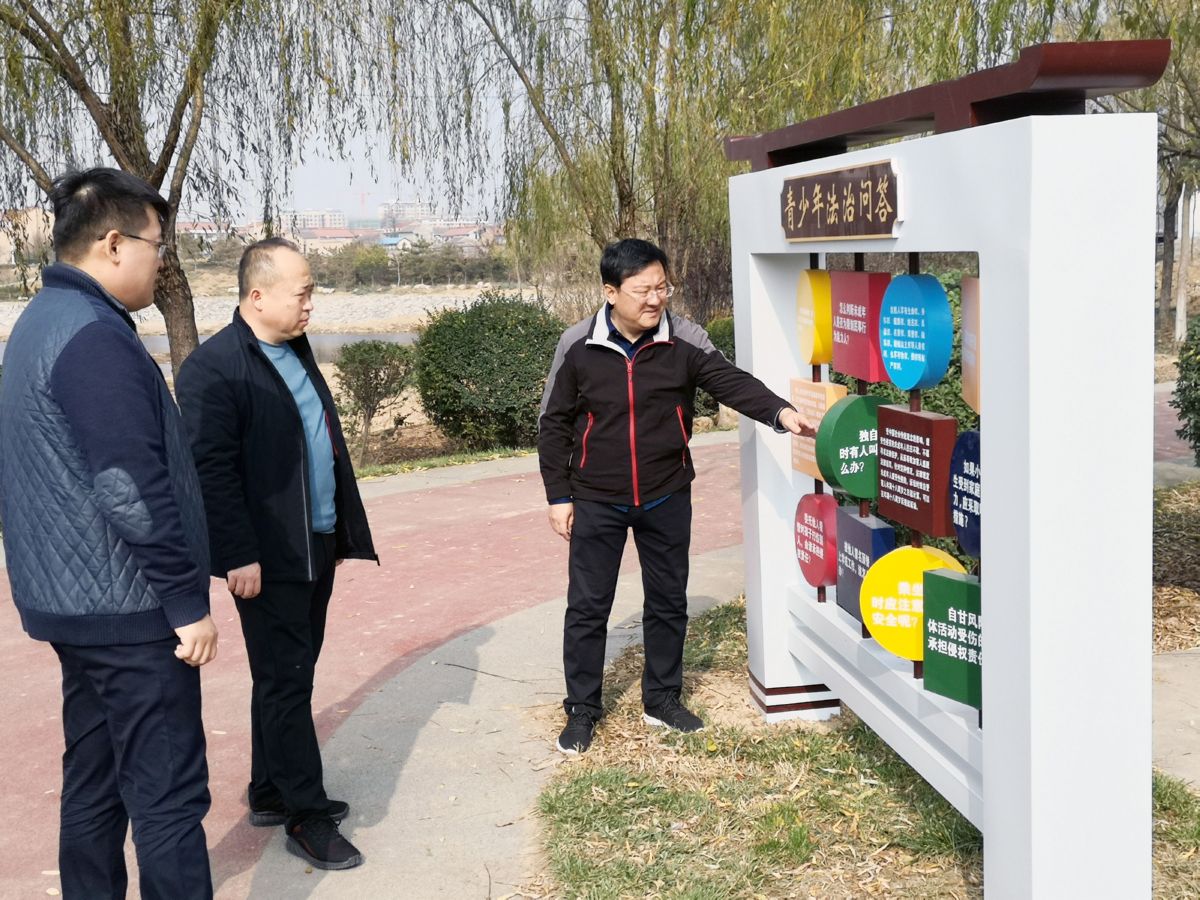 11月20日,聞喜縣司法局工作人員在該縣法治文化公園檢查指導(dǎo)施工進(jìn)度。