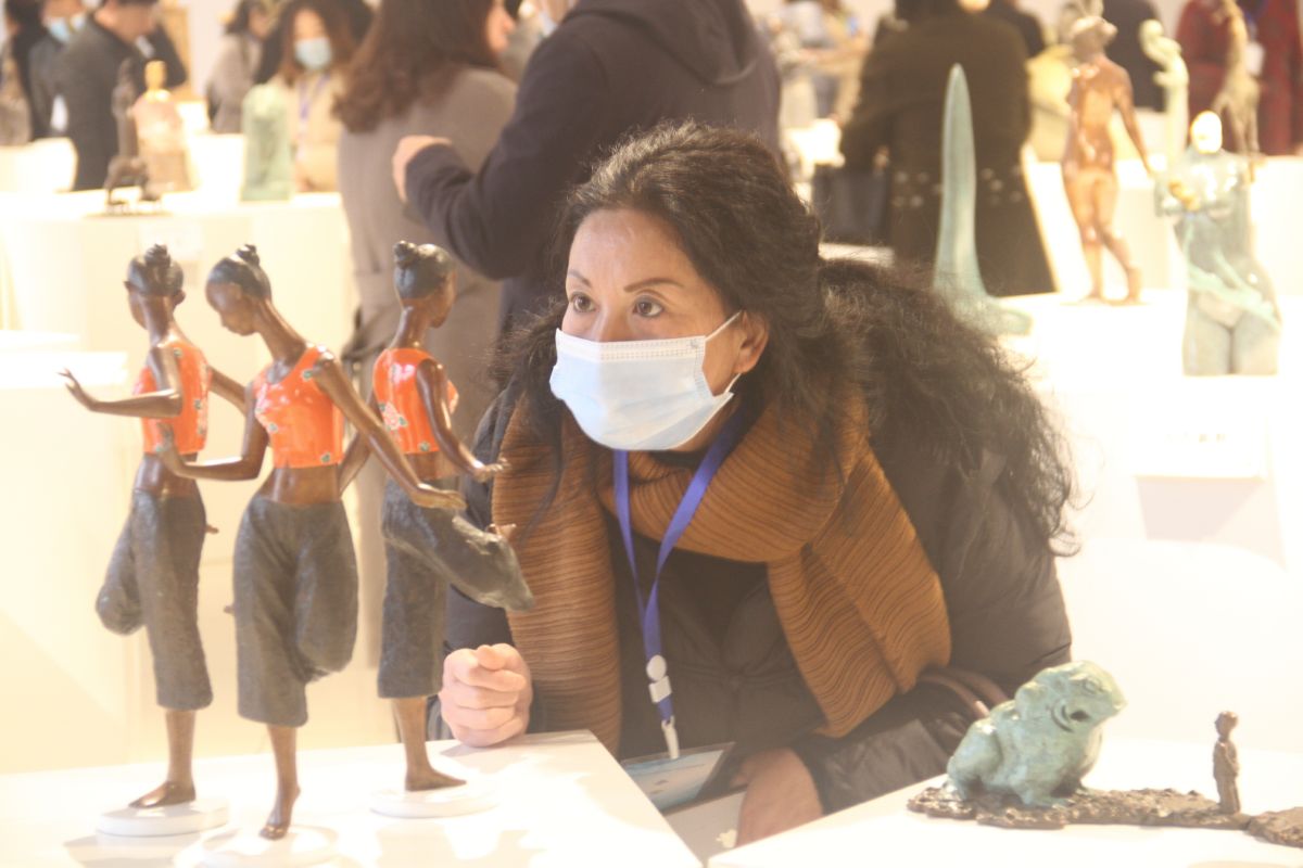 在宇達青銅文化產(chǎn)業(yè)園的原創(chuàng)青銅藝術(shù)館內(nèi),鹽湖“掐絲琺瑯”技藝傳承人馬金瑞被一件題為《踢毽子》的銅雕作品所吸引,她目不轉(zhuǎn)睛,左看右看,神情十分專注。“你看她的面部表情,再看她的肢體語言,我能夠感受到里面的故事,思緒一下子就被拉回到了童年……”馬金瑞說,此次觀摩讓她收獲了許多可以借鑒的東西,下一步會通過面部表情等細節(jié)方面的呈現(xiàn),將思想和故事融入她的每一件作品當(dāng)中,相信這樣才能打動更多的人。