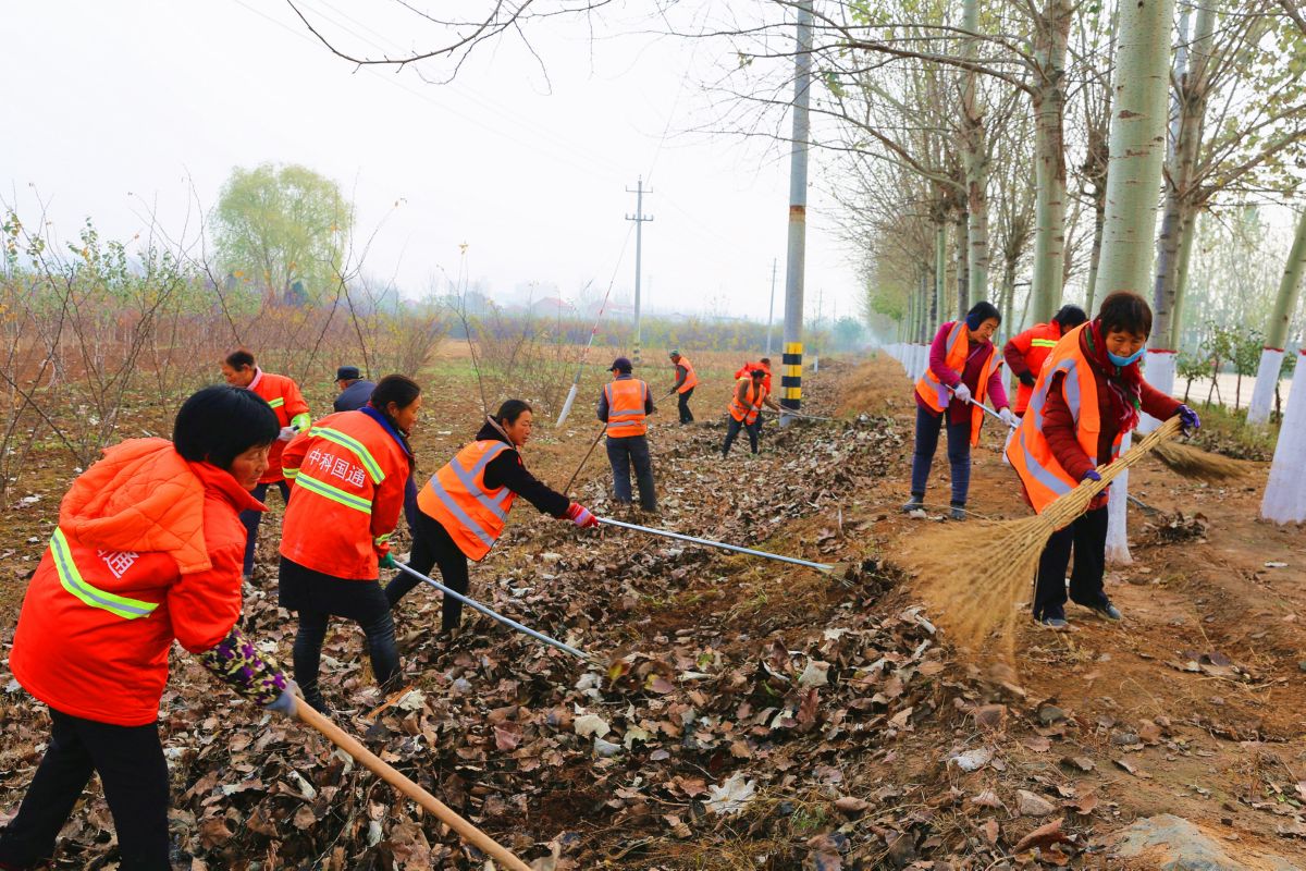 夏縣瑤峰段保潔員清掃落葉 特約攝影 張秀峰 攝