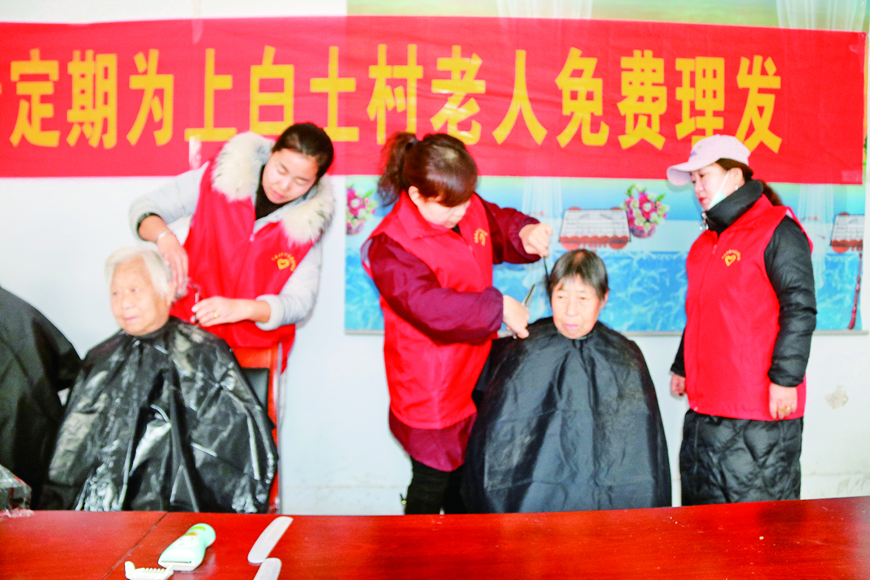 12月6日,聞喜縣愛心志愿者協會的志愿者,冒著嚴寒來到該縣桐城鎮上白土村為老年人義務理發。