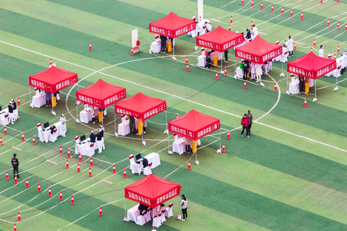 醫(yī)護(hù)人員為居民檢查眼睛 趙茜 攝