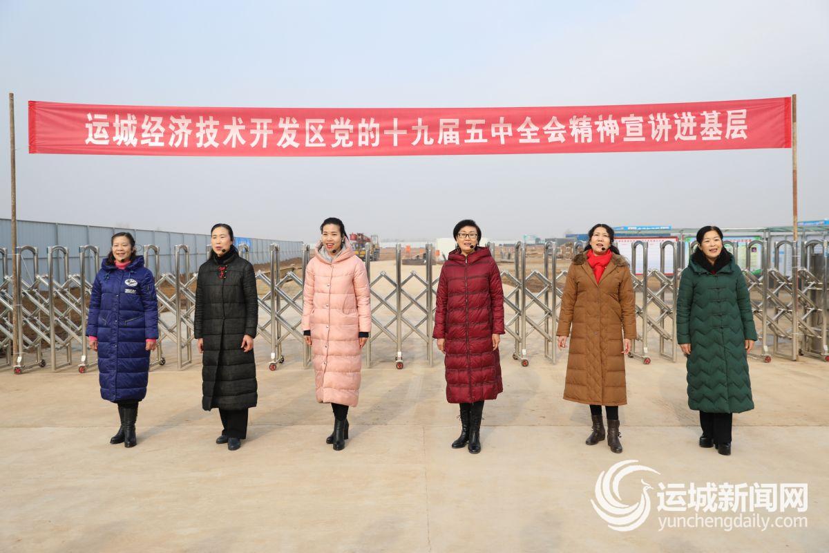 12月10日,文藝宣講小分隊首次走進項目建設工地,把黨的十九屆五中全會精神送到正威運城新材料產業園項目工地。小分隊成員結合黨的十九屆五中全會的重要內容,用說唱、快板等表演形式生動闡釋全會精神,展現運城經開人凝心聚力抓項目的新風貌。