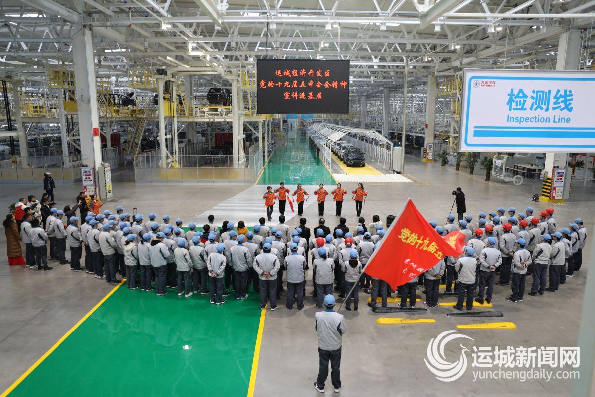 12月7日,大運新能源汽車生產基地車間人頭攢動,運城經開區“全會精神潤人心 文藝宣講進基層”文藝宣講活動在這里拉開序幕。快板《學建議、鼓干勁、促發展,勇于擔當作貢獻》展示了運城經開人學習宣傳貫徹全會精神、創新發展拉動經濟增長、勇于擔當作為的精神風貌;女聲獨唱《南湖的船,黨的搖籃》和男生獨唱《這里最早叫中國》唱出了運城經開人的初心;大運員工的才藝表演展示了大運的企業風采。最后,熱情洋溢的女生小合唱進一步使理論宣講生動起來。