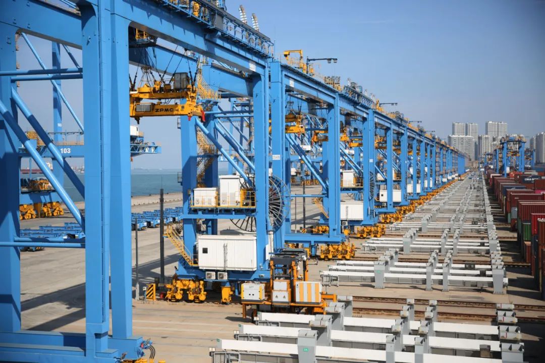 △10月8日,位于山東自貿區青島片區的山東港口青島港全自動化碼頭集裝箱堆場一派繁忙景象。