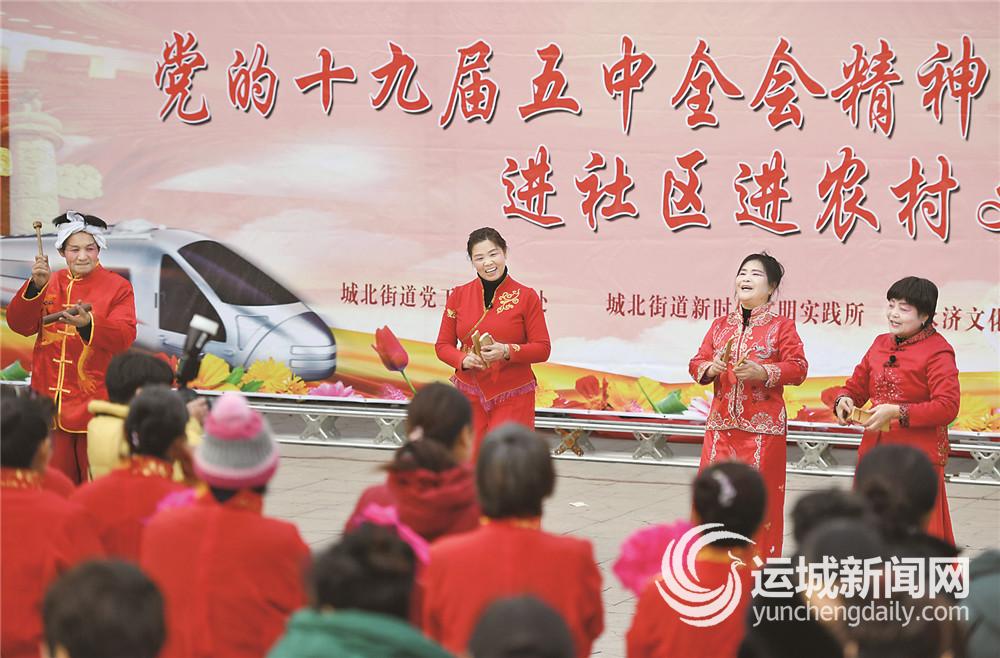 連日來,永濟市城北街道積極組織黨員和文藝愛好者在轄內各社區、農村開展“黨的十九屆五中全會精神進社區進農村”文藝巡演,通過說唱、戲曲等群眾喜聞樂見的形式,讓黨的十九屆五中全會精神家喻戶曉。