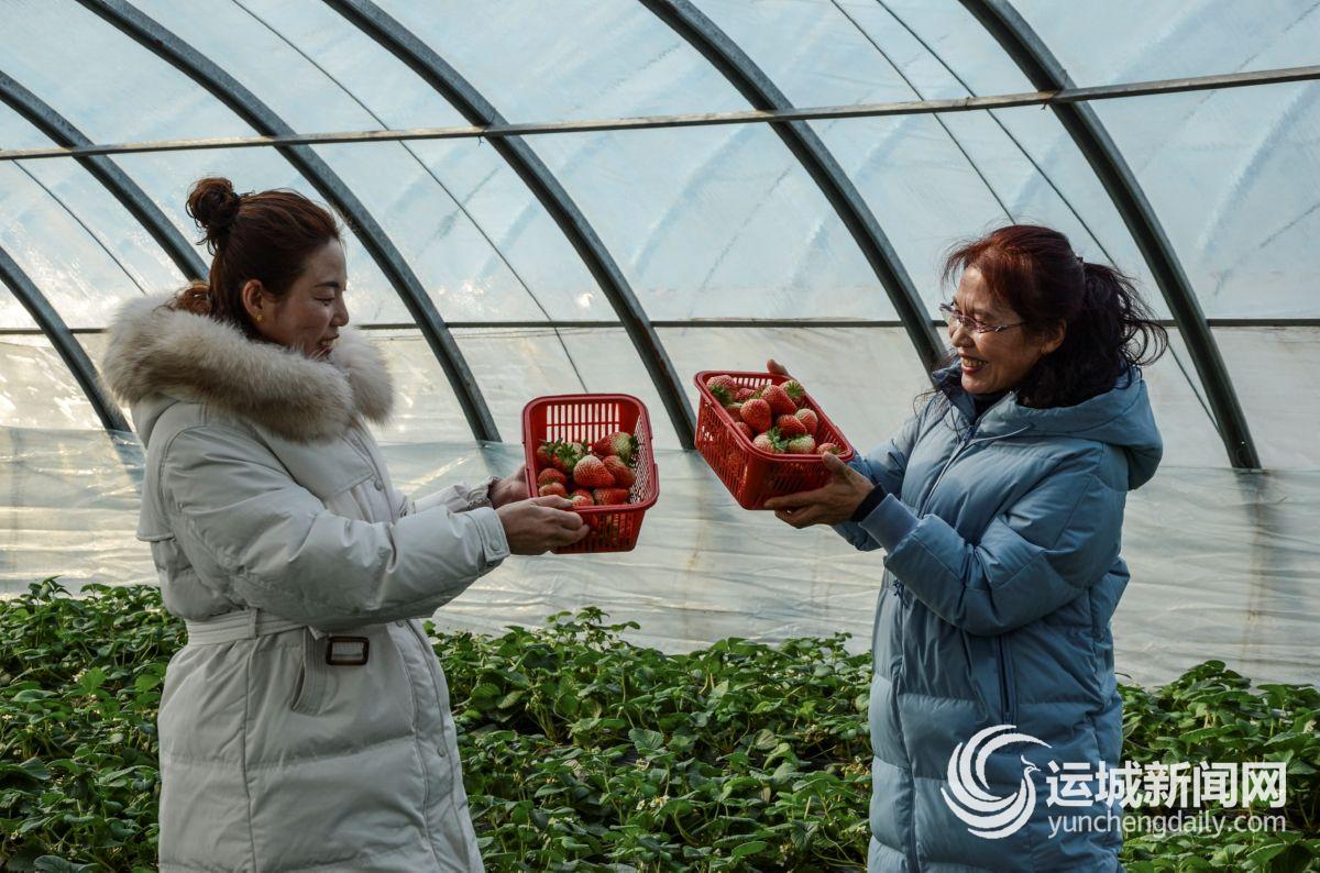 ▲1月3日,游客帶著孩子在芮城縣紅河谷家庭農(nóng)場(chǎng)摘草莓,在元旦假期里享受采摘快樂(lè)。