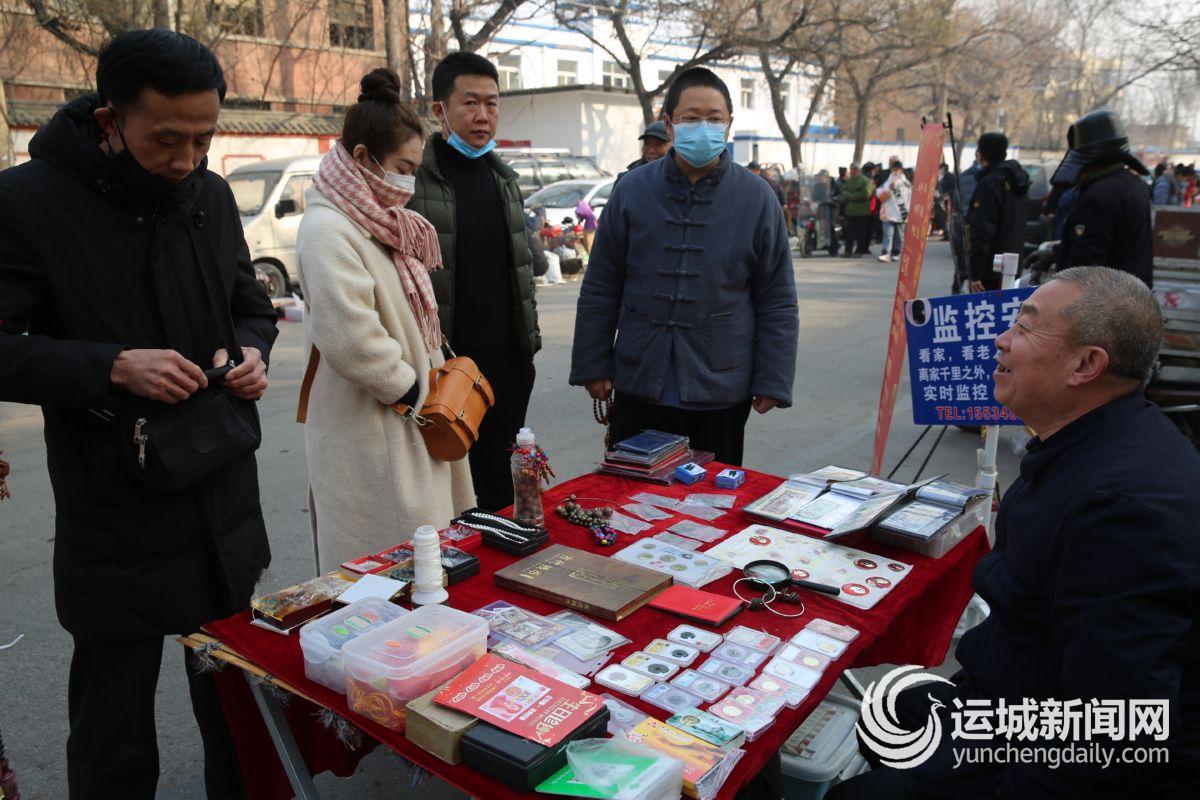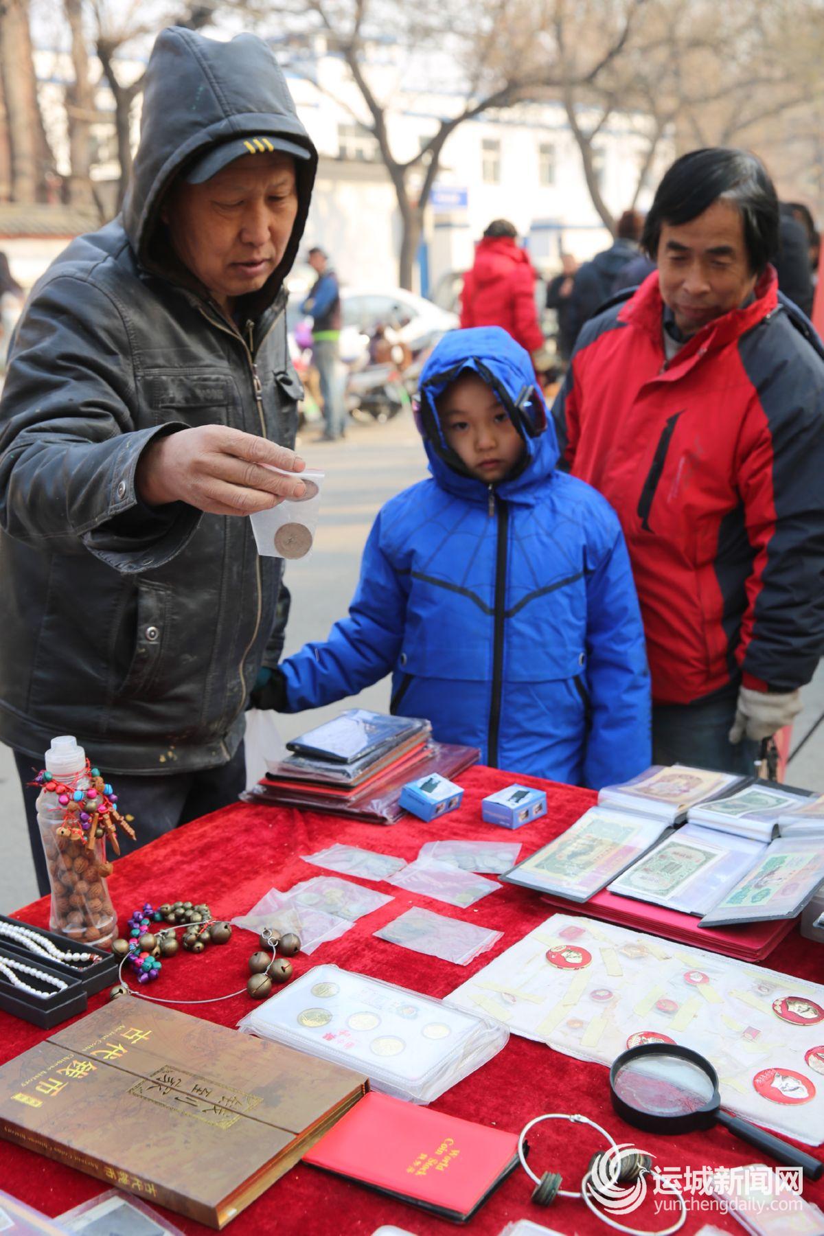 1月3日,元旦小長假最后一天,位于永濟市河東民俗文化街上的古玩市場,幾名古錢幣愛好者在認真鑒別與選購舊版錢幣。