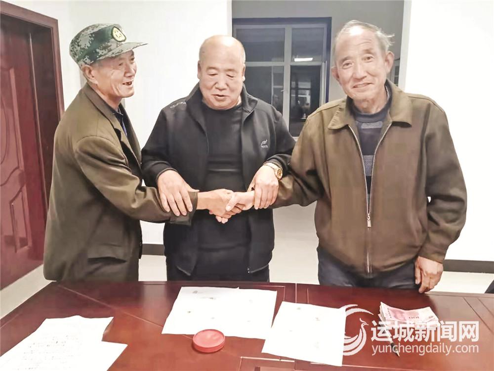 經過姚建安(中)的耐心調解,原本鬧意見的雙方握手言和。