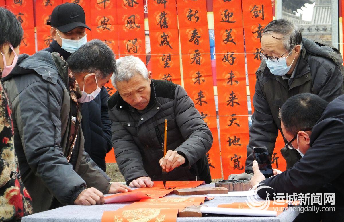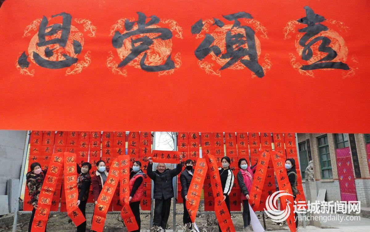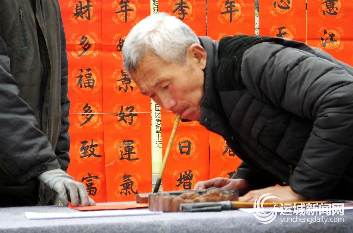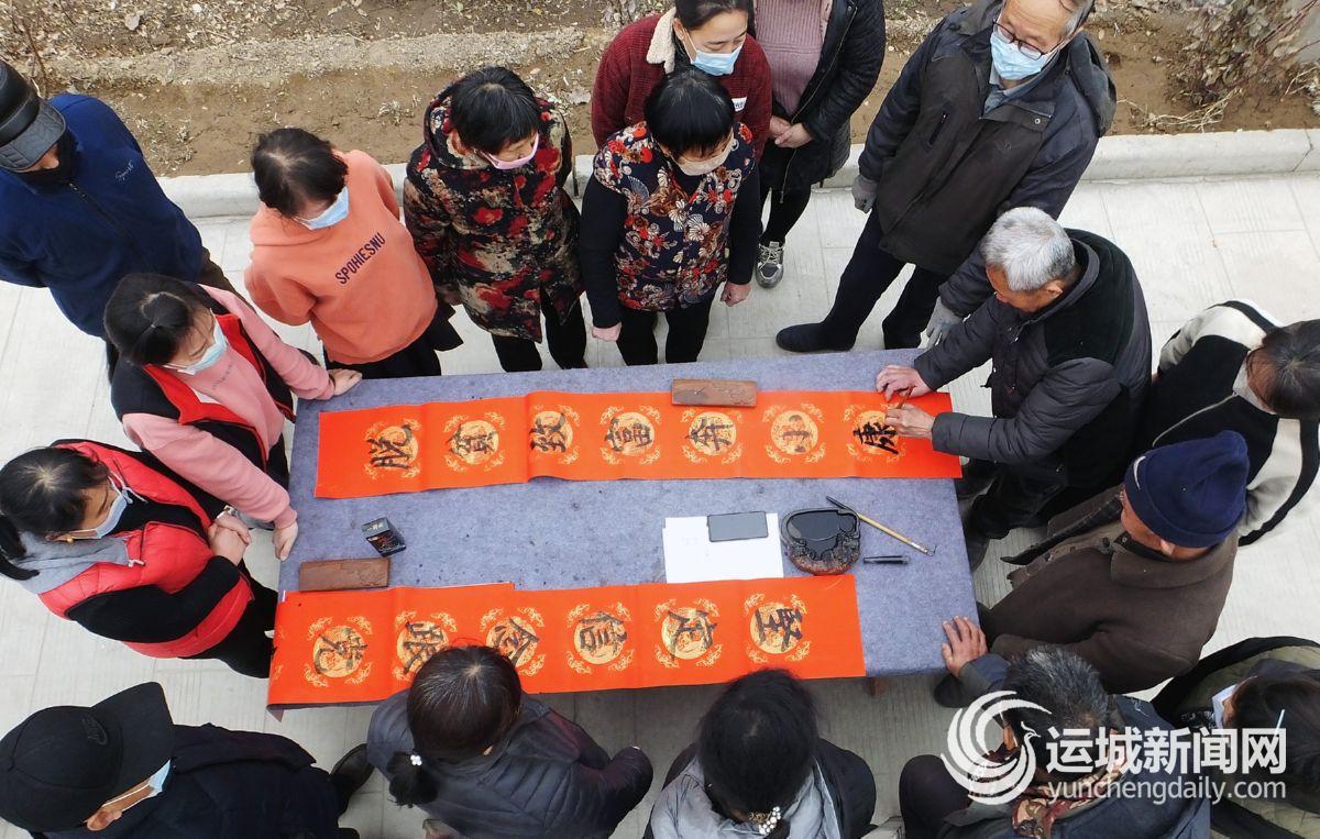 當日,58歲的建檔立卡貧困戶、鄉村農民左筆書法家李天保,在該村書畫協會和絳州澄泥硯研制所工藝師的幫助下,加班加點為全村父老鄉親義務書寫春聯。