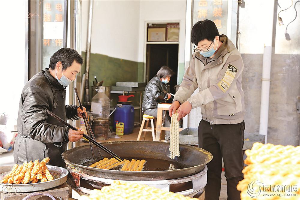 2月5日,夏縣瑤峰鎮陳村村民在家里炸麻花