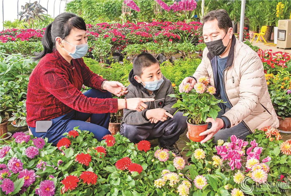2月4日,市民在鹽湖區花卉市場挑選鮮花