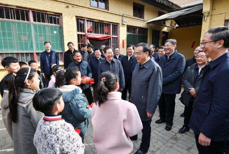 2月7日,春節前夕,中共中央政治局常委、國務院總理李克強在山西運城考察。這是李克強在夏縣廟前鎮吳村了解村里孩子的上學情況。 新華社記者 殷博古 攝
