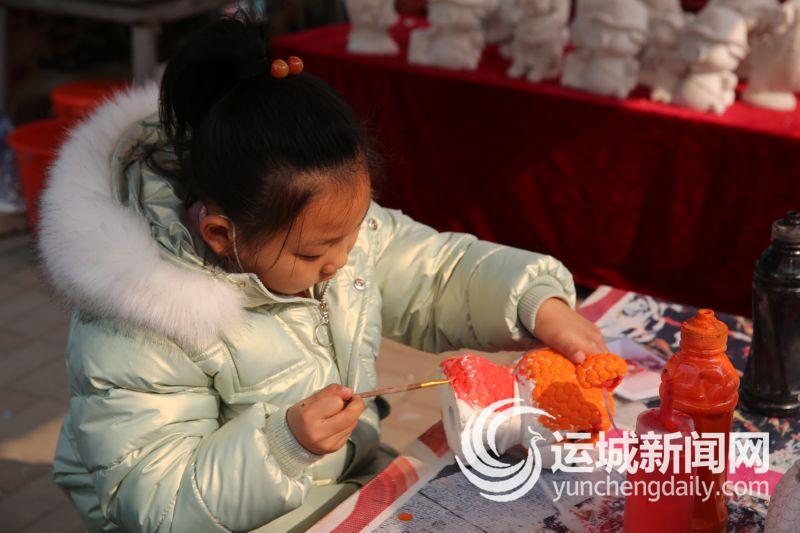2月12日(正月初一)上午,春光正好,在永濟市舜帝山森林公園歡樂谷一隅,一名女童在家長的陪伴下,在給“小狗”涂鴉上色。