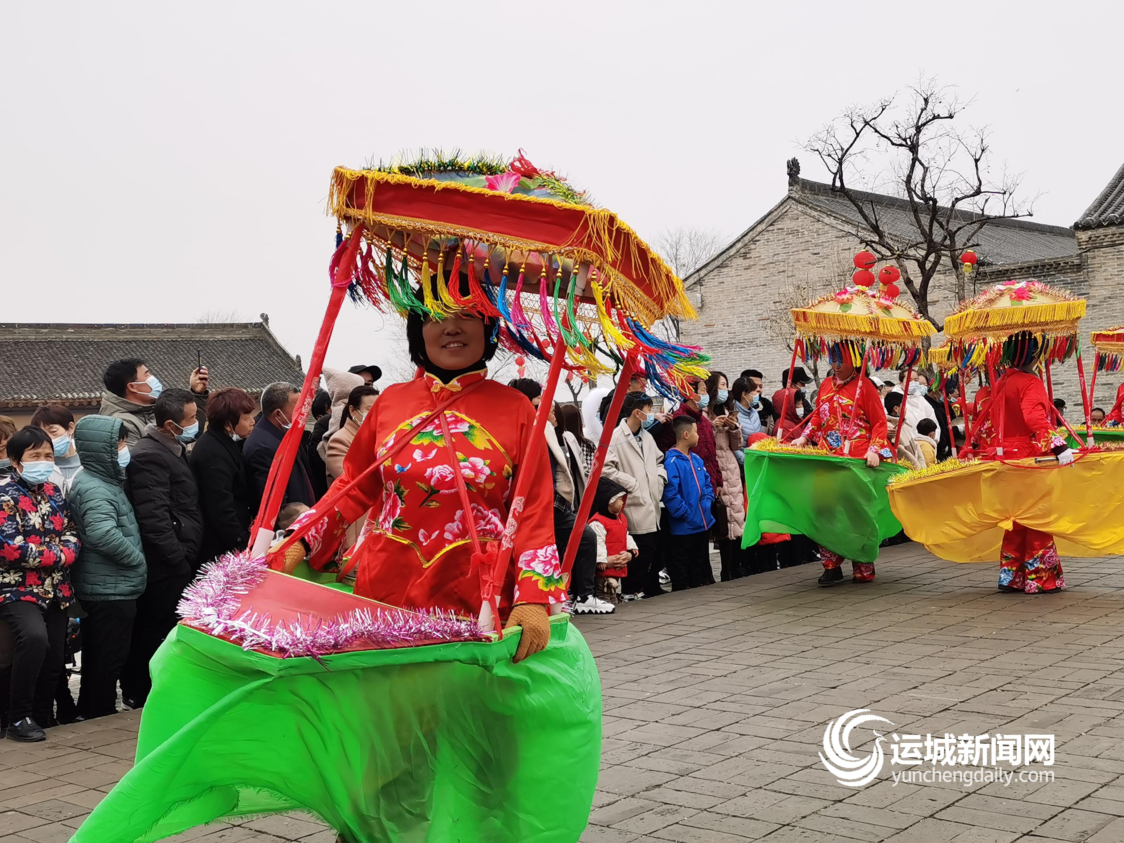 ▲2月26日,游客在嵐山根運城印象體驗地觀看民俗表演“劃旱船”。記者 景斌 攝
