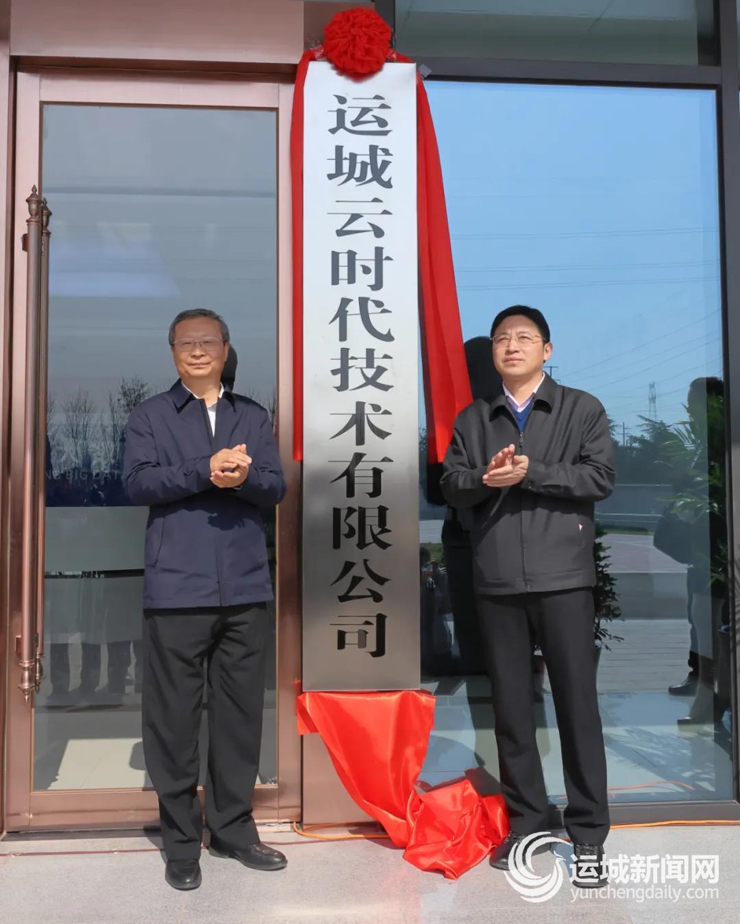 揭牌儀式上,丁小強與盛佃清為山西省大數據中心運城分中心揭牌,儲祥好與盛佃清為運城云時代技術有限公司揭牌。