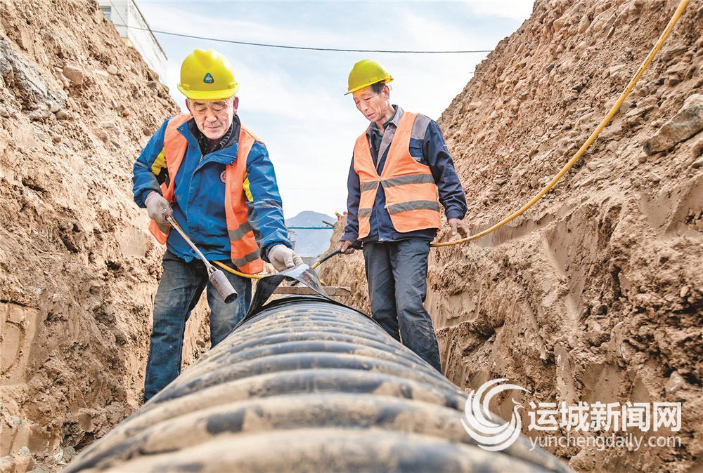 3月4日,鹽湖區(qū)解州鎮(zhèn)關(guān)鋁大道改造項(xiàng)目工地,工人們正加緊施工。 記者 金玉敏 攝