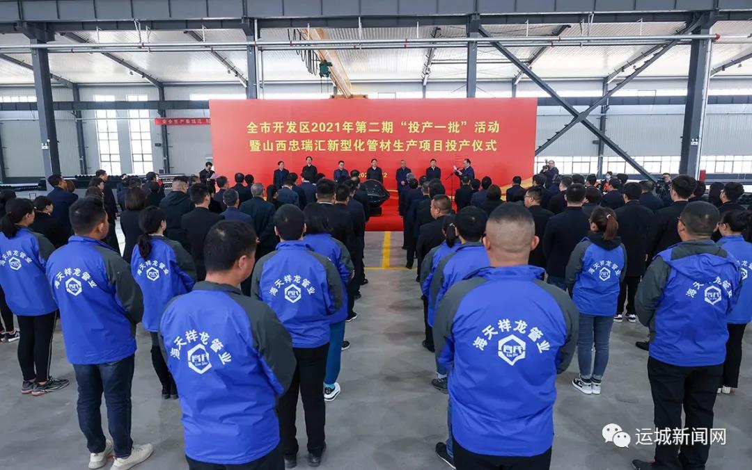 “簽約一批”活動結束后,丁小強、儲祥好等市領導出席了運城經濟技術開發區的康新科技產業園項目開工儀式,共同為項目開工培土奠基。隨后,儲祥好等來到山西忠瑞匯機械設備制造有限公司,與企業負責人共同啟動新型化管材生產項目,并觀摩新型化管材生產線。