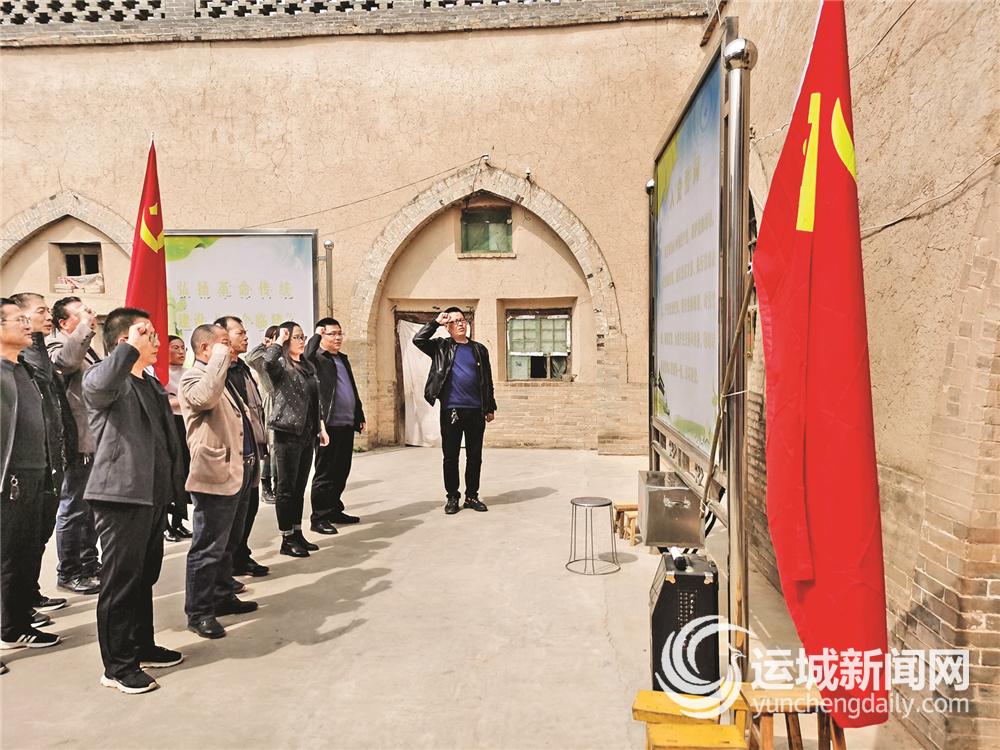4月6日,在臨猗縣北景鄉(xiāng)焦家營猗氏縣抗日民主政府舊址,楚侯中心校全體黨員在鮮紅的黨旗下,重溫入黨誓詞。