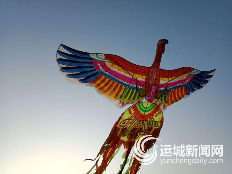運城風箏是中國體育旅游精品項目,清明時節,運城市風箏協會在圣天湖小鎮舉行了大型風箏表演,為河東旅游助威。 樊世俊 攝