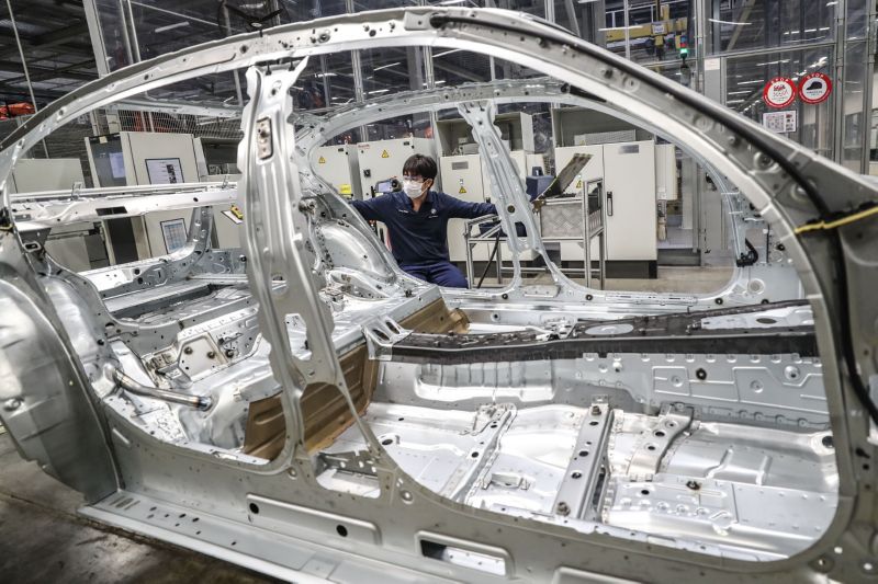▲工人在華晨寶馬汽車有限公司鐵西工廠生產線上工作(2020年2月17日攝)
