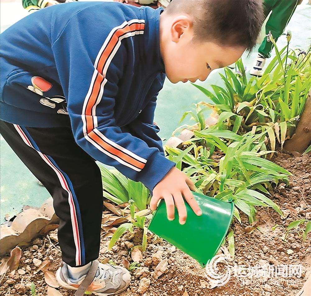 一粒種子、一棵菜苗……都是孩子們探索發(fā)現(xiàn)的對象。小小的種植活動,激發(fā)了孩子們的求知欲,滿足了他們的好奇心,更拓展了他們的知識面。 記者 杜磊 攝