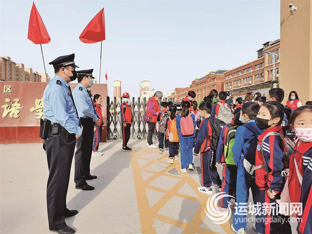 民警在鹽湖區涑水聯合雙語校區門前開展護學活動