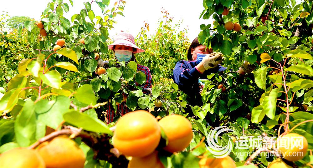 ▲5月18日,夏縣瑤峰鎮(zhèn)北山底村村民在挑揀剛采摘的早熟紅杏。