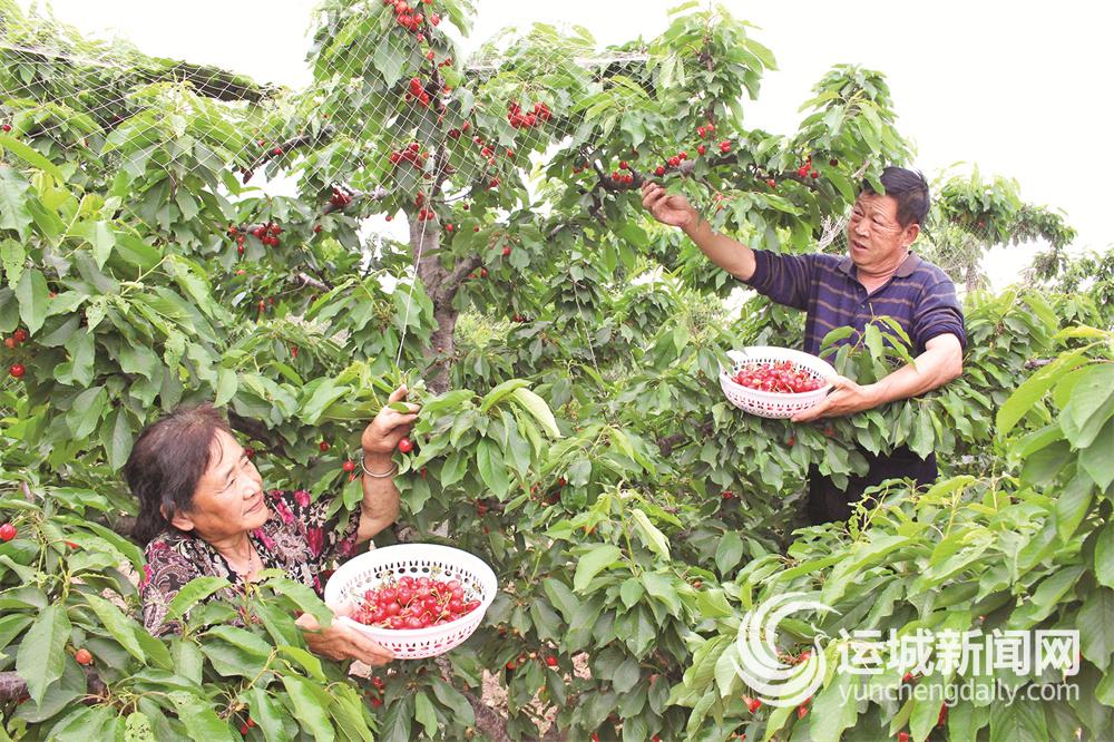 ▲近日,聞喜縣神柏鄉(xiāng)窯頭溝村農(nóng)民張立俊和老伴趙慧明,在自家櫻桃園采摘櫻桃。 年逾六旬的張立俊夫婦憑著勤勞的精神、苦干的勁頭和科學(xué)巧干,引進(jìn)秦櫻一號(hào)、薩米脫和布魯克斯等早中晚5個(gè)品種,栽植了10畝400余株櫻桃樹。在他們的辛勤管理下,櫻桃園連年豐收,經(jīng)濟(jì)效益十分可觀,同時(shí)也帶動(dòng)了村民共同致富。