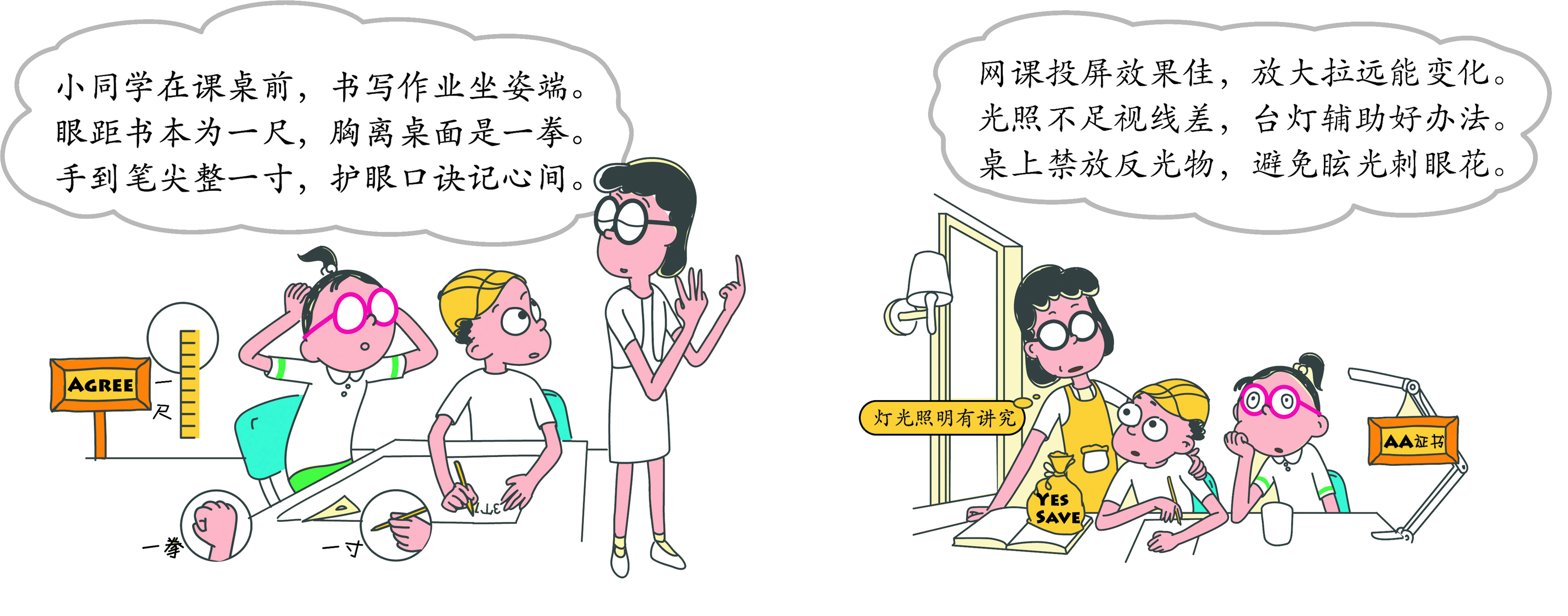 第一,自然療法。保證每天日間課外活動(dòng)兩小時(shí),最好是間斷性的,這就需要孩子在課間休息時(shí)間,盡量多去戶外活動(dòng)。第二,20-20-20法則。每看近處20分鐘,至少要看20英尺(6米)遠(yuǎn)的物體20秒。第三,正確的讀書(shū)寫(xiě)字姿勢(shì)。眼離書(shū)本一尺,握筆的手指離筆頭一寸,胸部與書(shū)桌保持一拳的距離。第四,定期檢查視力,建立視力發(fā)育檔案。至少每年檢查一次,及早發(fā)現(xiàn)眼屈光異常,提前干預(yù)。第五,控制在線學(xué)習(xí)時(shí)長(zhǎng)。每天小學(xué)不超過(guò)兩小時(shí),初中不超過(guò)3小時(shí),高中不超過(guò)4小時(shí)。