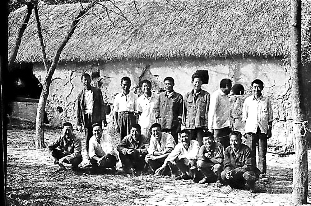 1981年,部分“大包干”帶頭人在茅草屋農舍前合影。 新華社發