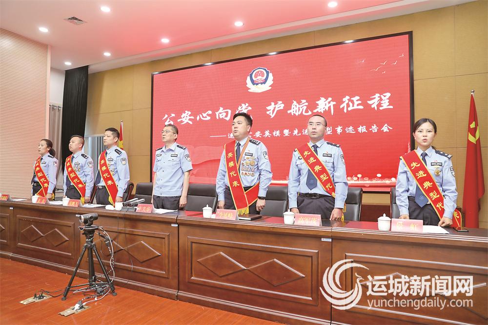 為推動(dòng)政法隊(duì)伍教育整頓走深走實(shí),引導(dǎo)和激勵(lì)廣大公安民警忠誠(chéng)履職、擔(dān)當(dāng)作為、為民服務(wù),近日,市公安局舉行“公安心向黨 護(hù)航新征程”全市公安英模暨先進(jìn)典型事跡報(bào)告會(huì)。報(bào)告會(huì)上,河津市公安局刑偵大隊(duì)民警高軍茂、芮城縣公安局刑偵大隊(duì)民警張佳、鹽湖公安分局北城派出所戶籍民警景虹、新絳縣公安局交警大隊(duì)秩序股股長(zhǎng)常新霞等先進(jìn)代表進(jìn)行交流和分享,集中展示了新時(shí)代運(yùn)城公安隊(duì)伍的浩然正氣、優(yōu)良品質(zhì)和可貴精神。