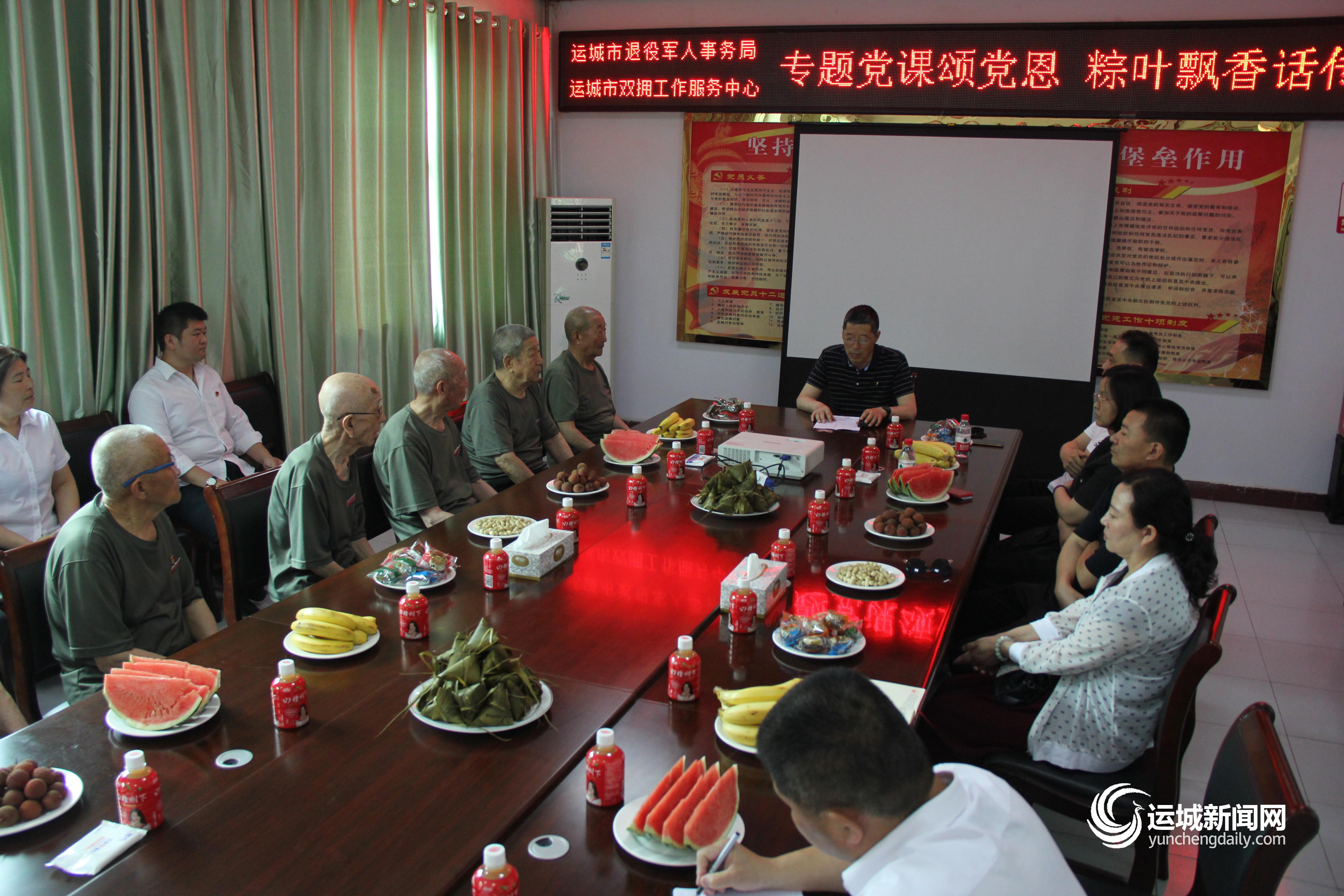 運城晚報訊(記者 杜磊)6月11日上午,運城市雙擁工作服務中心會議室內一片歡聲笑語。在端午節來臨之際,市退役軍人事務局黨組成員、副局長謝益民一行,和市光榮院的老戰士們在此座談(上圖),以專題黨課的形式共同頌黨恩、話傳承。