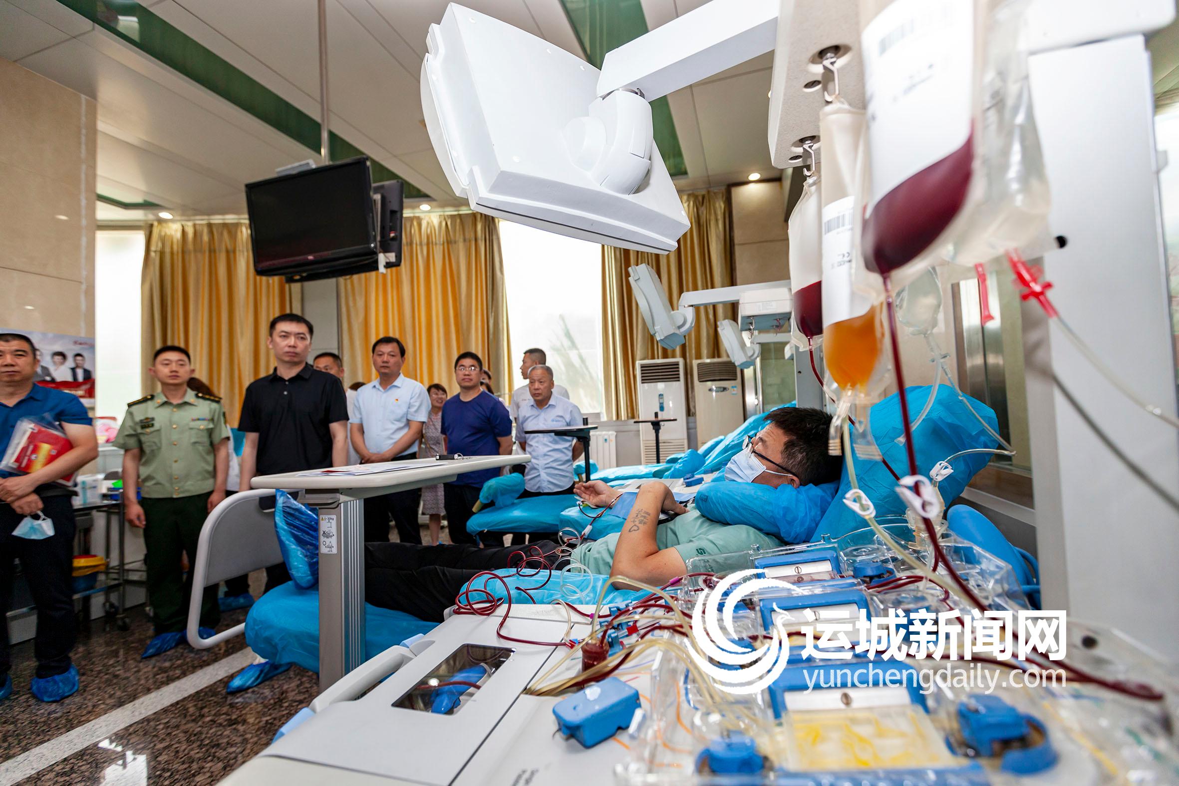 ▲6月11日,市中心血站職工向市民介紹機采血小板流程。