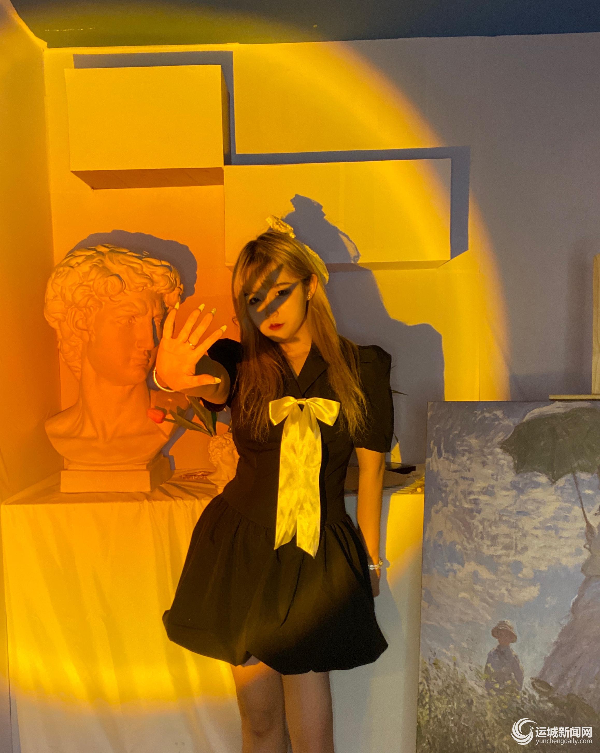 “這個中世紀(jì)繪畫主題搭配一個日落燈,光源是內(nèi)部橘色、外部黃色,拍出來的畫面特別有味道。愛麗絲夢游仙境主題則設(shè)置了煙霧器,女孩子化妝成精靈穿梭其中,更有神奇幻境的感覺。”高瑞昕介紹。