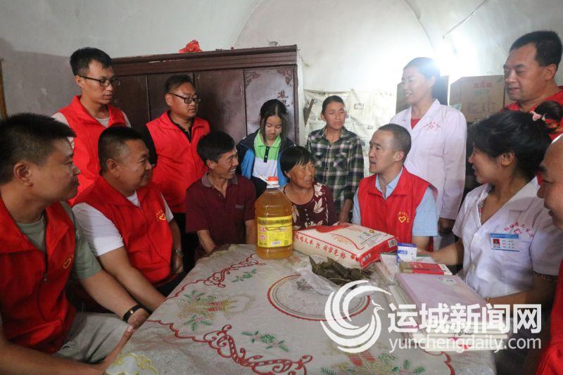 ▲近日,聞喜縣愛心志愿者協會的志愿者來到后宮鄉南白石村,為該村殘疾困難戶張衛平,送去米、油等慰問品。