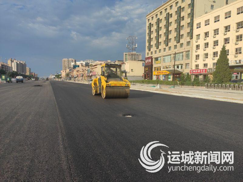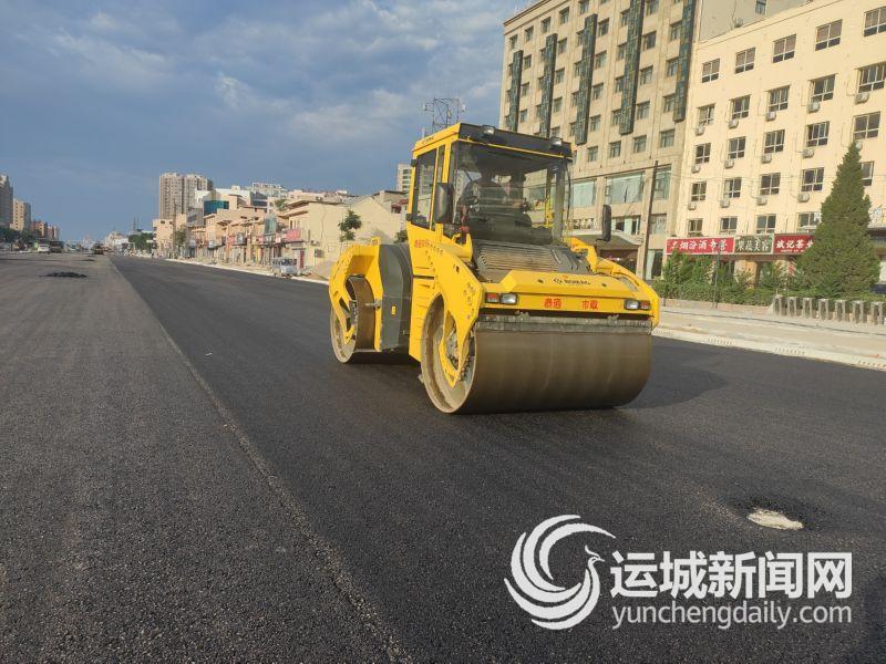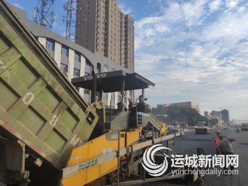 運城晚報訊(記者 祁克寧)6月23日18時許,在禹都大道提升改造工程中銀路至學苑路段,記者看到施工單位正組織攤鋪機、壓路機等機器,鋪設第一層瀝青層。