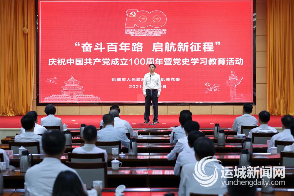本報訊(記者 張 越)6月30日下午,市政府辦公室機關黨委舉行“奮斗百年路、啟航新征程”慶祝建黨100周年活動暨黨史學習教育。市政府黨組書記、市長儲祥好以普通黨員身份參加并講話,與黨員干部共同緬懷黨的百年歷程,熱情謳歌黨的輝煌成就,深情表達對黨的忠誠與熱愛。市領導王志峰、梁清燕、崔元斌、董旭光、刁海鵬參加。市政府秘書長張保安致辭。