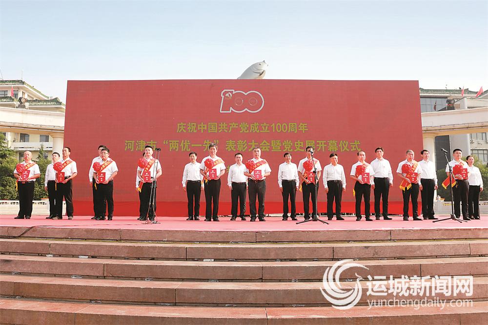 運城市委常委、河津市委書記李曉武,河津市委副書記、市長何偉等河津市四大班子領導與河津市紀委監委、河津市司法局、河津市自然資源局等單位的干部職工,分別合唱了《國際歌》《歌唱祖國》《沒有共產黨就沒有新中國》等革命歌曲,唱響了慶祝建黨100周年的動人贊歌。該市12名優秀共產黨員代表走上舞臺接受表彰。其中,抗戰老兵楊四子、企業家代表張會民、抗疫代表任霞等3名優秀共產黨員代表分享了他們在平凡崗位上的奮斗故事。
