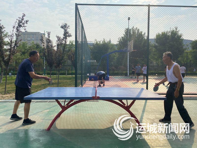 與此同時,在距離“健身器材小廣場”不遠處的乒乓球場,市民張志剛和韓勝利正在激烈地比拼球技,有時一個球要爭奪幾個回合。