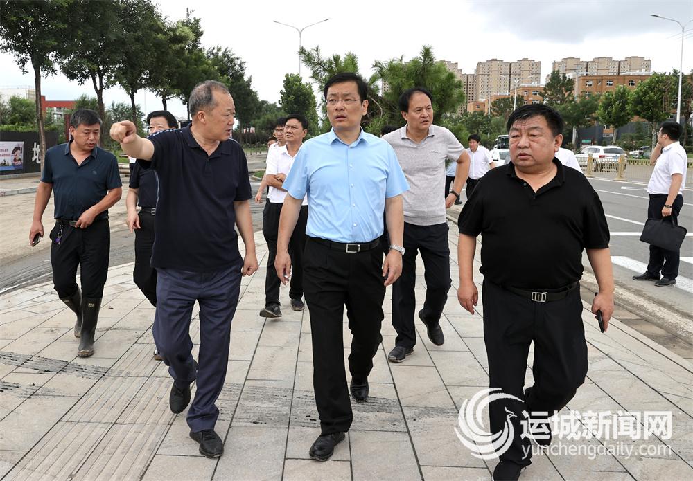 近日,我市遭遇強降雨天氣,據(jù)氣象部門預(yù)報,未來降雨還將持續(xù),全市防汛工作特別是中心城區(qū)排水防澇工作面臨嚴峻考驗。丁小強十分關(guān)注防汛工作,先后來到中心城區(qū)部分易積水路段、干河站北調(diào)節(jié)池、貨場西路泵站、干河?xùn)|留調(diào)節(jié)池和大禹街臨時排水泵站等處,實地查看道路積水排出情況,現(xiàn)場詢問泵站設(shè)施、調(diào)節(jié)池水流和水位等情況,通過中心城區(qū)雨污分流平面圖,詳細了解城市雨污水流向、管道布置等,并對下一步防汛工作進行安排部署。