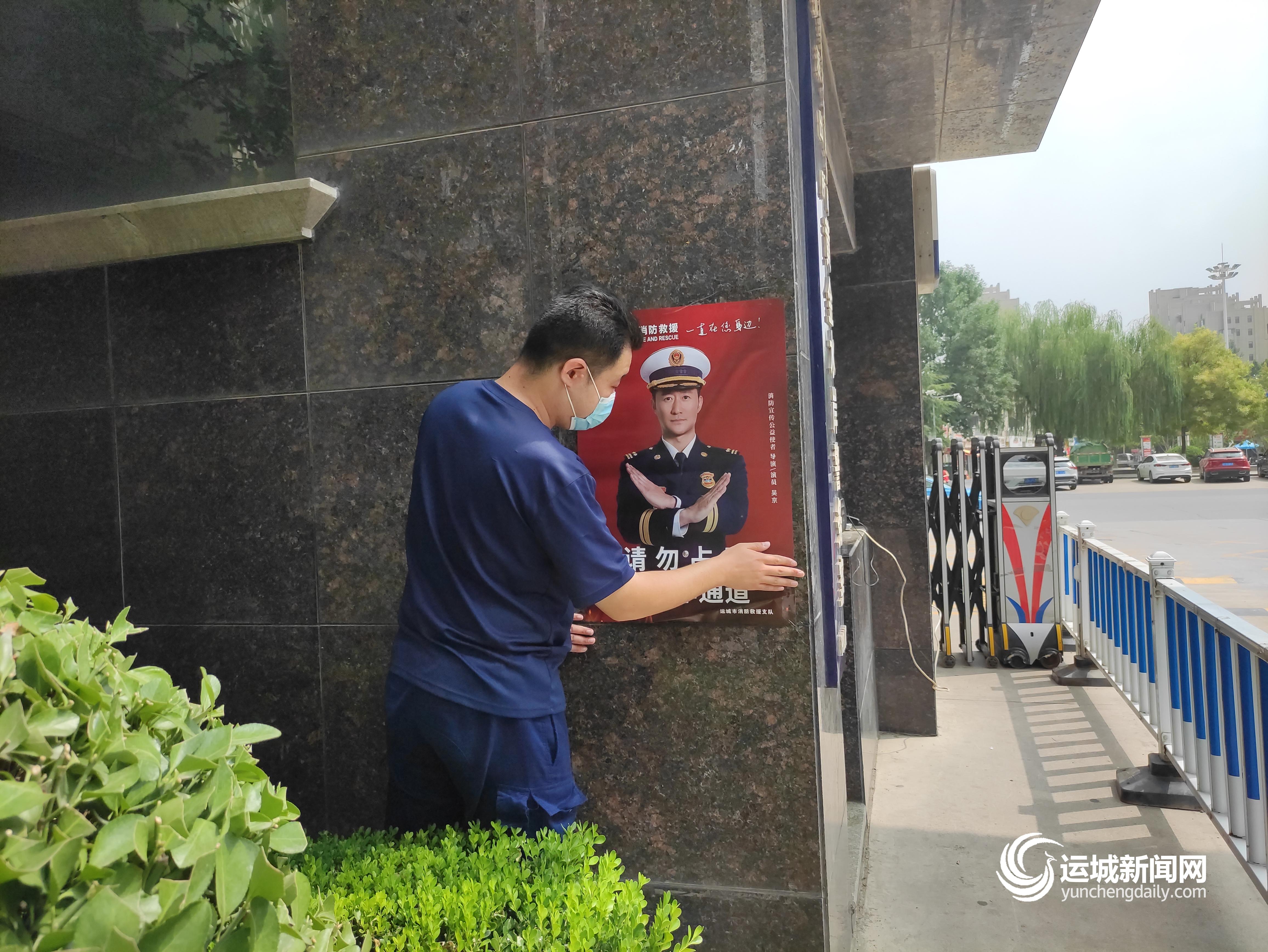 ▲宣傳人員張貼海報(bào)