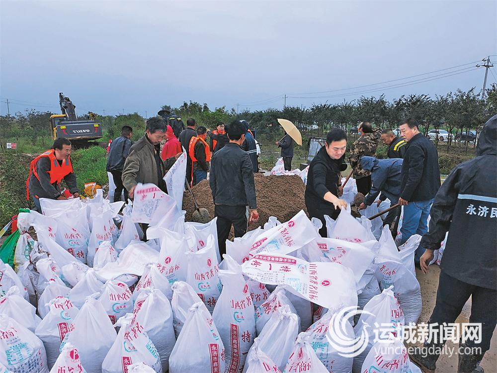 ▲永濟市水利局工作人員在姚暹渠土橋段搶險 (運城市水務局供圖)