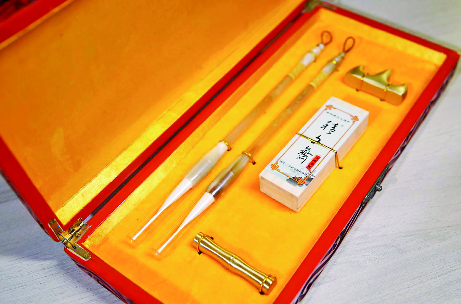 山西絳筆筆墨有限公司的毛筆,沿襲傳統工藝,經80余道工序細工完成。不同的毛筆選用不同的原料,毫有羊毫、狼毫、紫毫、兼毫之分,其獨特之處在于具有尖、圓、齊等特點。該筆使用起來得心應手,是文人雅士選用佳品。