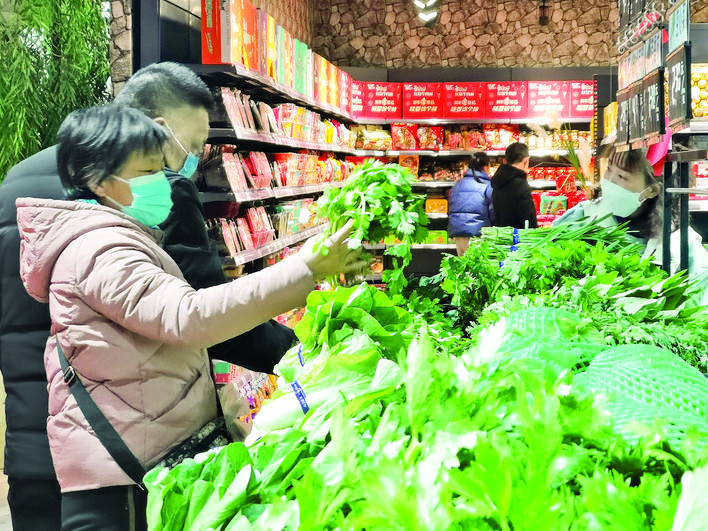 “小年也是年”。當天,該超市的蔬菜、肉類、年節禮盒等銷售火熱,結賬處排起了長隊。