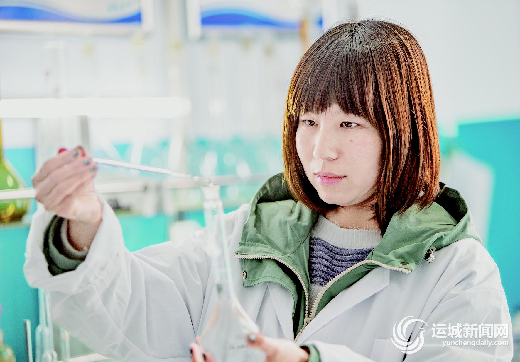 山西萬榮縣黃騰化工有限公司的工作人員在檢測試劑 記者 金玉敏 攝
