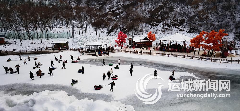 北京冬奧會(huì)催生了我市冰雪旅游熱,這是游客在絳北大峽谷游玩。
