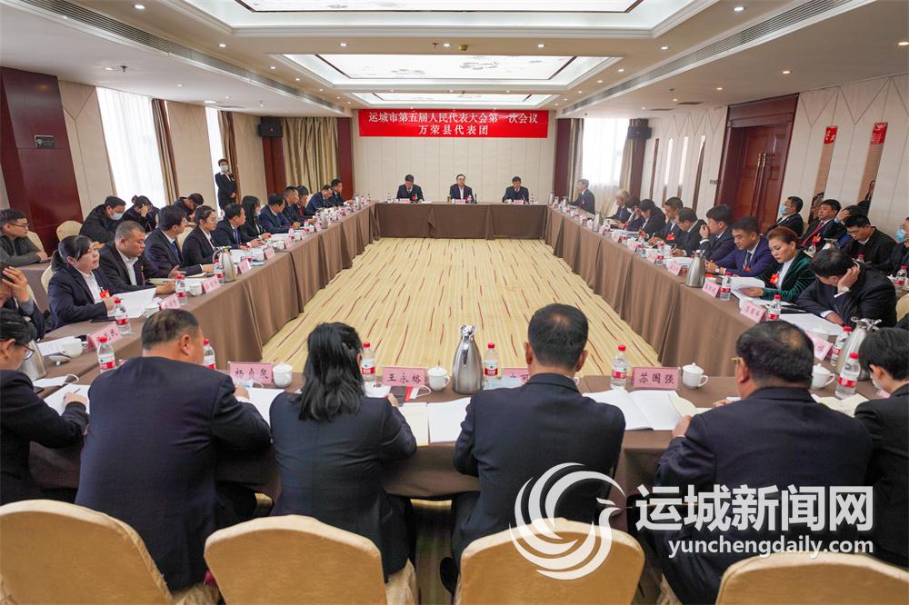 2月21日下午,參加市五屆人大一次會議的萬榮代表團代表在審議政府工作報告。