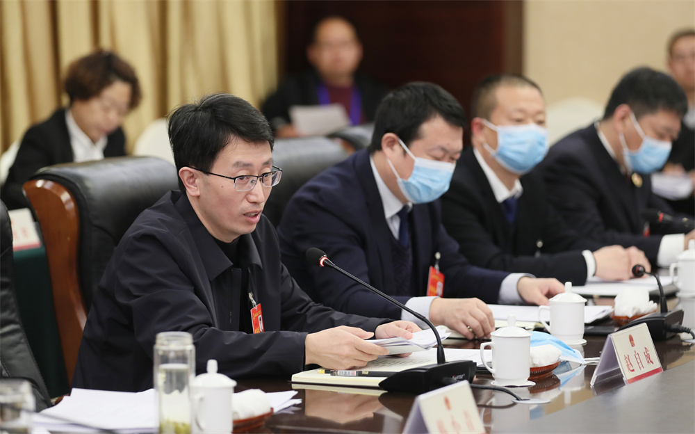 2月23日,市人大代表審議市人大常委會和市法檢兩院工作報告。