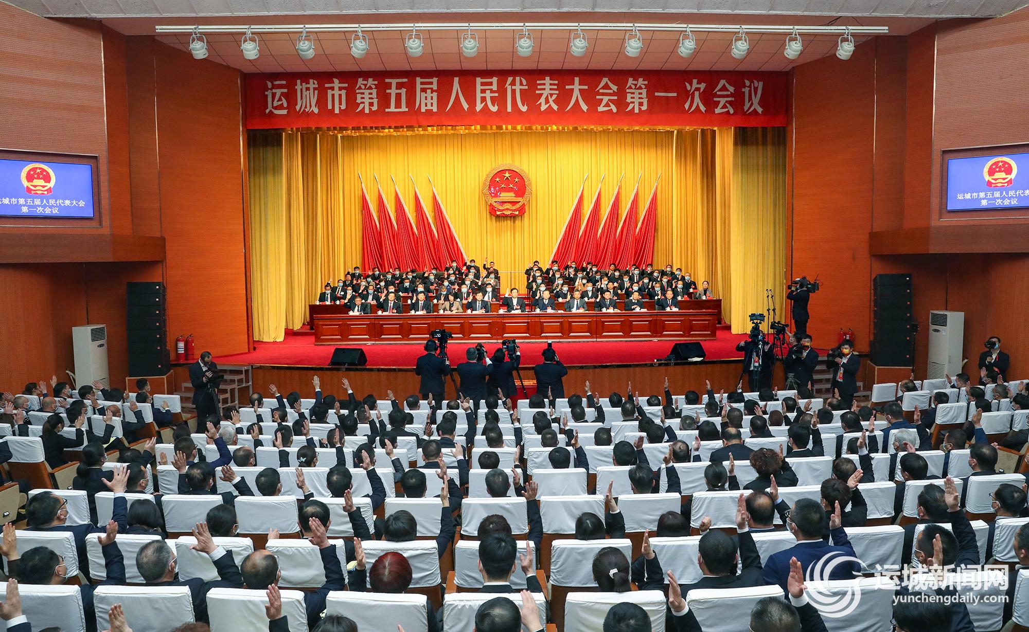 2月24日,運城市第五屆人民代表大會第一次會議閉幕。圖為代表表決通過有關決議。記者 雷哲俠 閆 鑫 陳方斌 攝
