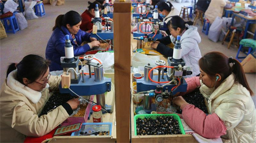 該廠新近招收40余名員工,大都是農村留守婦女。她們在家門口上班,既能掙錢,也方便照顧老人和孩子。 張秀峰 攝